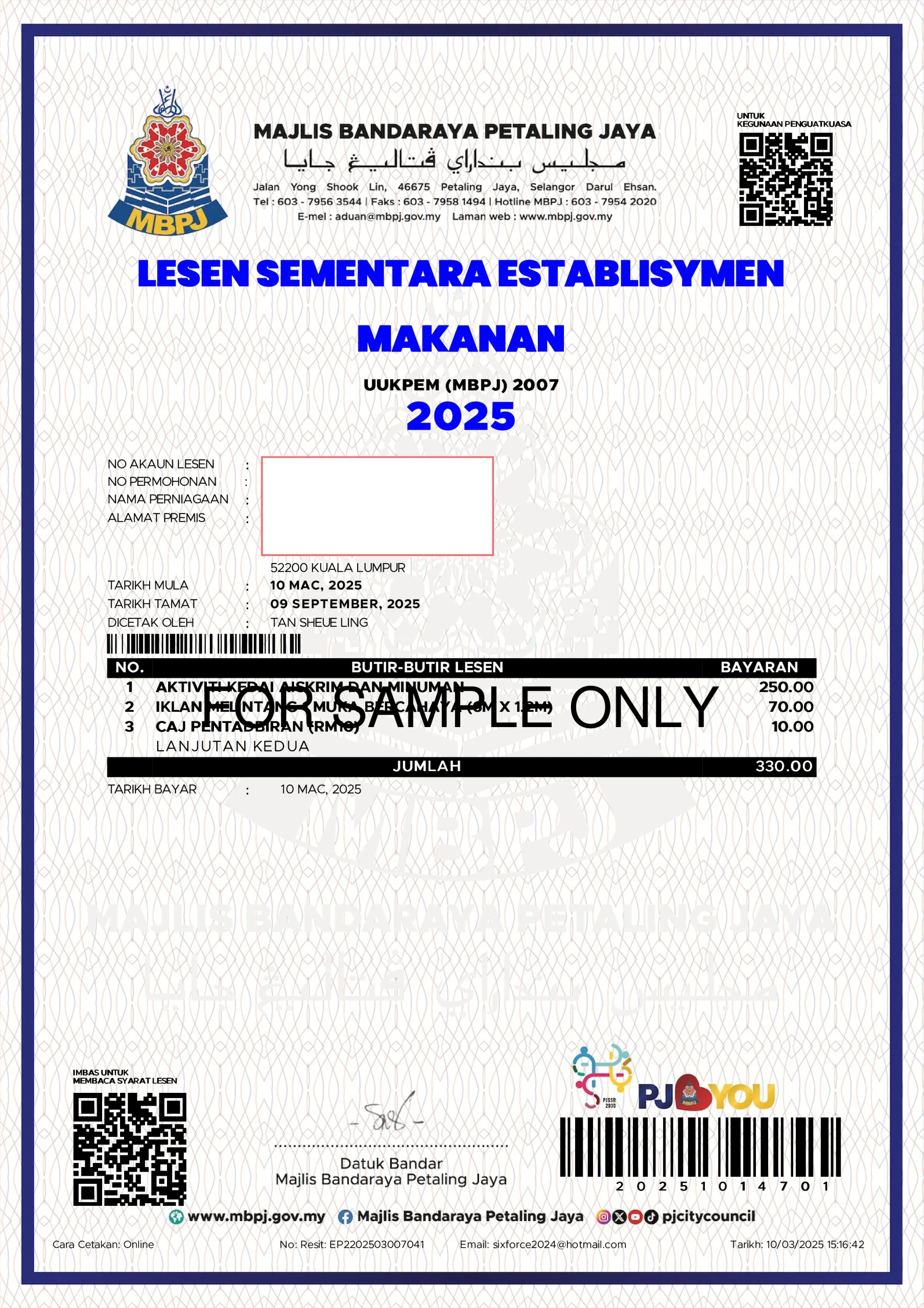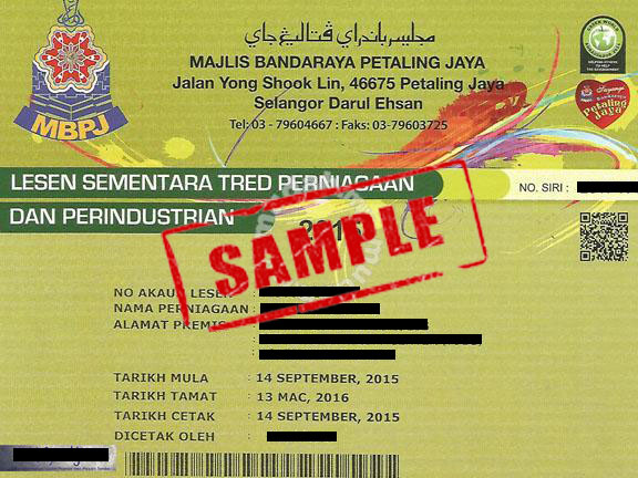 Lesen Sementara Tred Perniagaan dan Perindustrian MBPJ