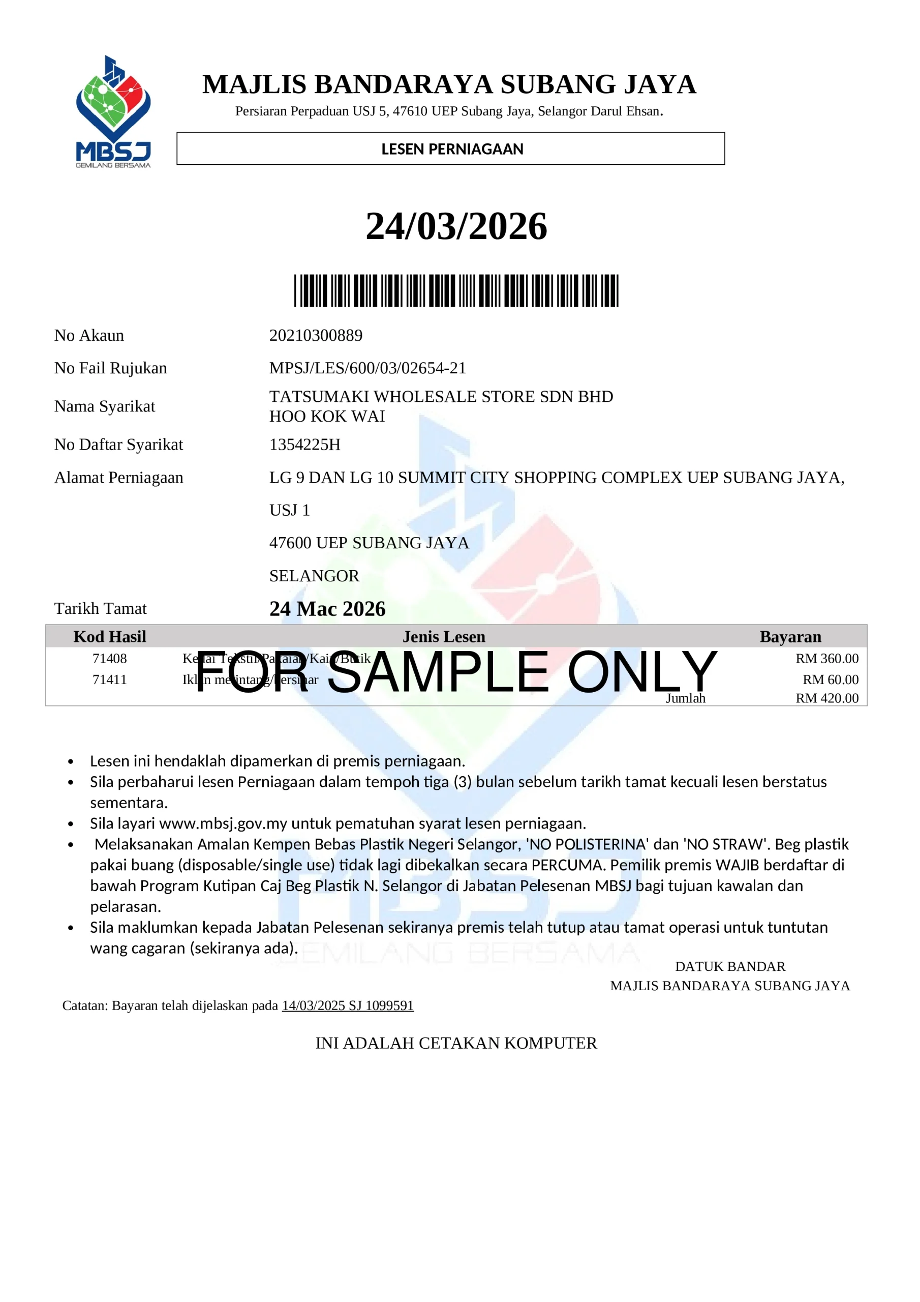 Lesen Perniagaan Majlis Perbandaran Subang Jaya
