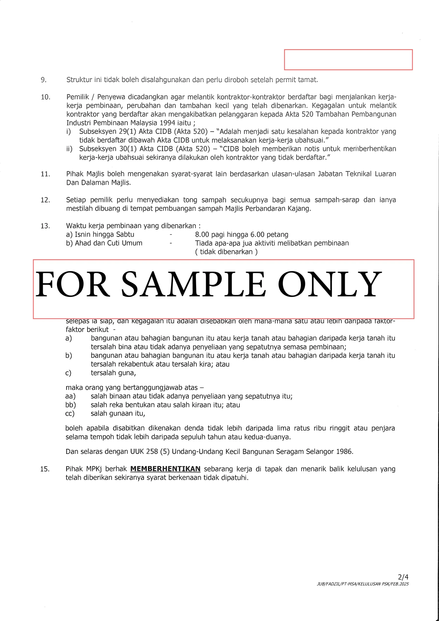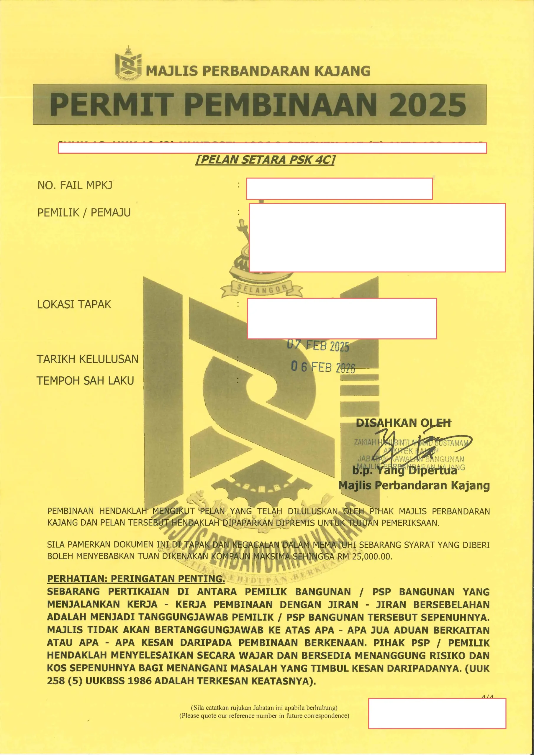Permit Application: Kebenaran Merancang/ Development Order/ Permit Pembangunan
